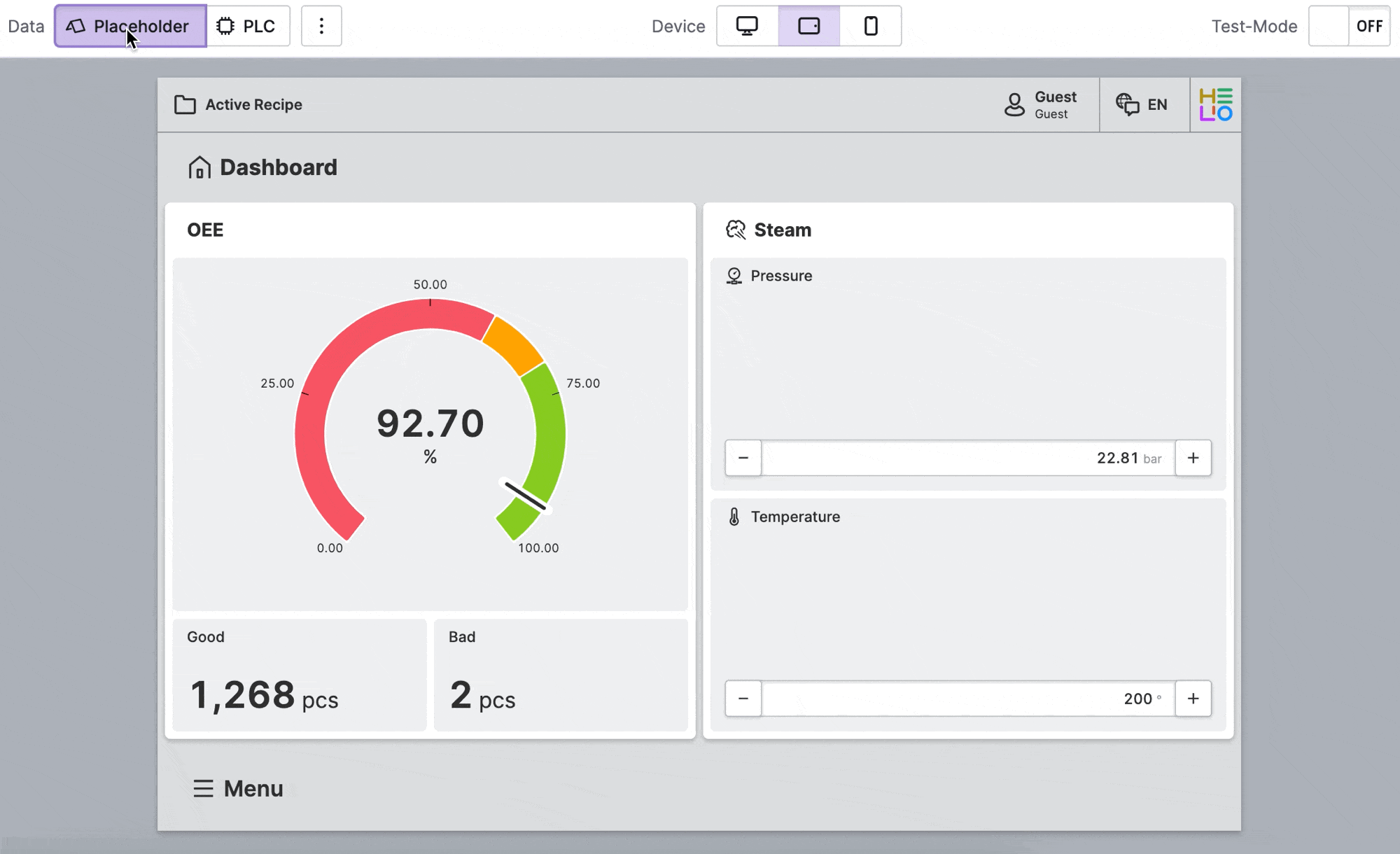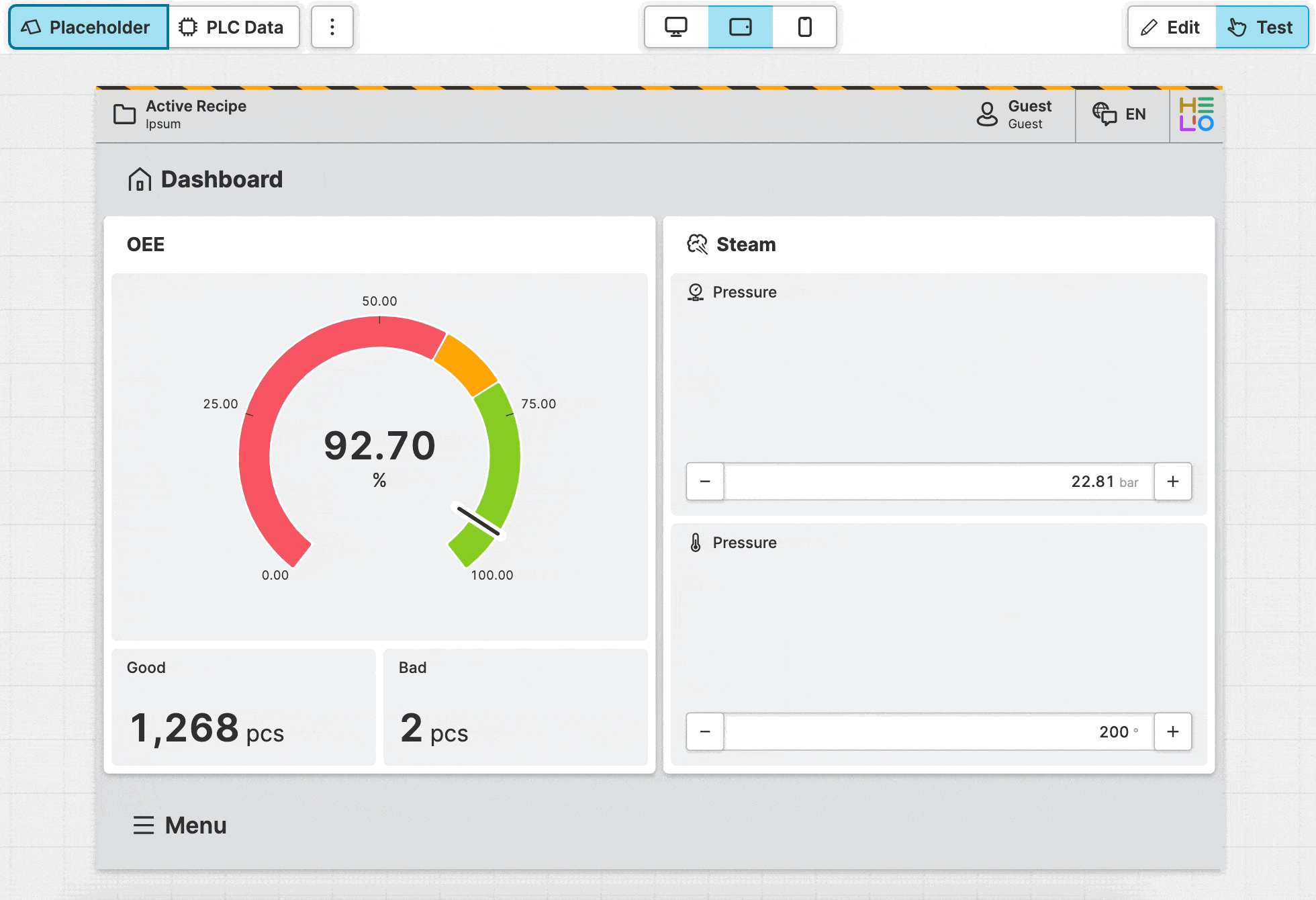 Switch from Placeholder mode to PLC mode using the buttons above the HMI Preview Panel.