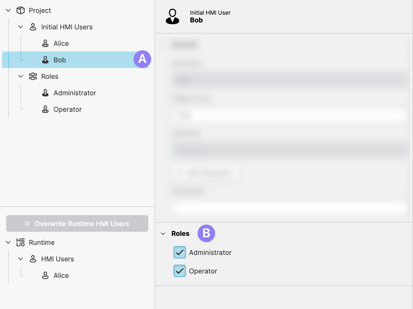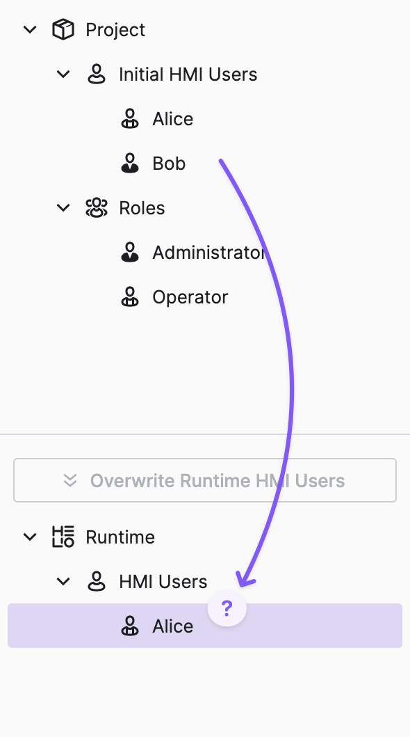 Fortunately, this isn't a significant issue. Simply click Overwrite Runtime HMI Users and confirm the resulting dialog to reset the