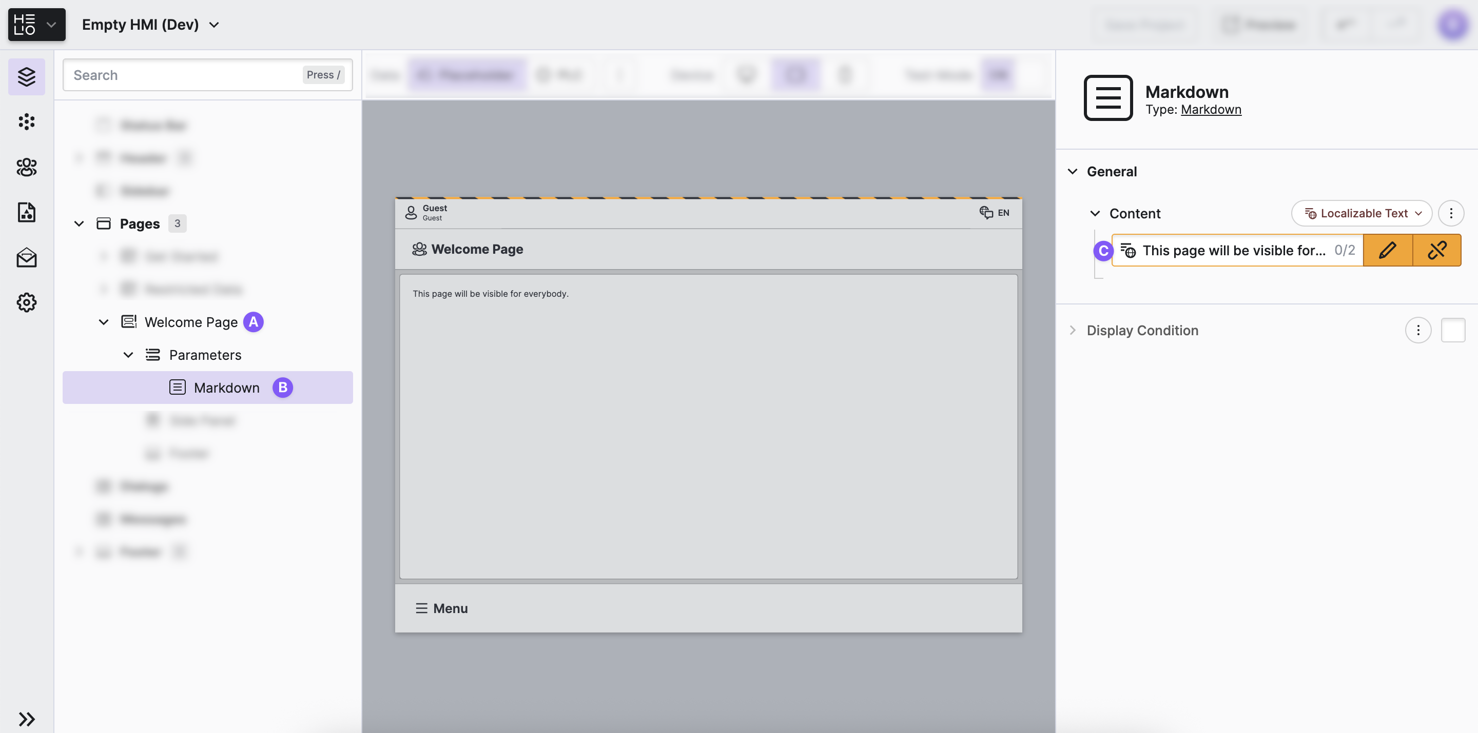 Parametersslot of this page.If you like, go ahead and adjust the text of the markdown or the icon of the page.