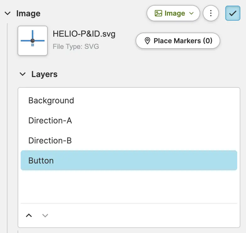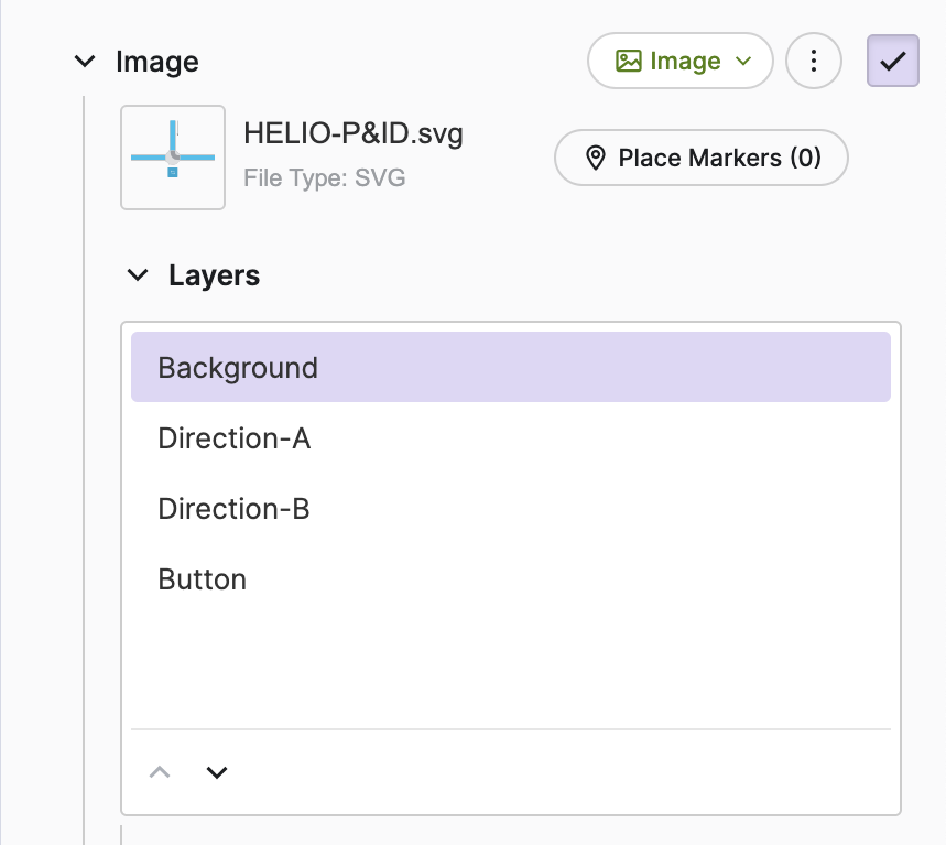 Once you import an SVG image with prefixed layers, HELIO will make the layers accessible within the Properties Panel of the Image element like in this example: