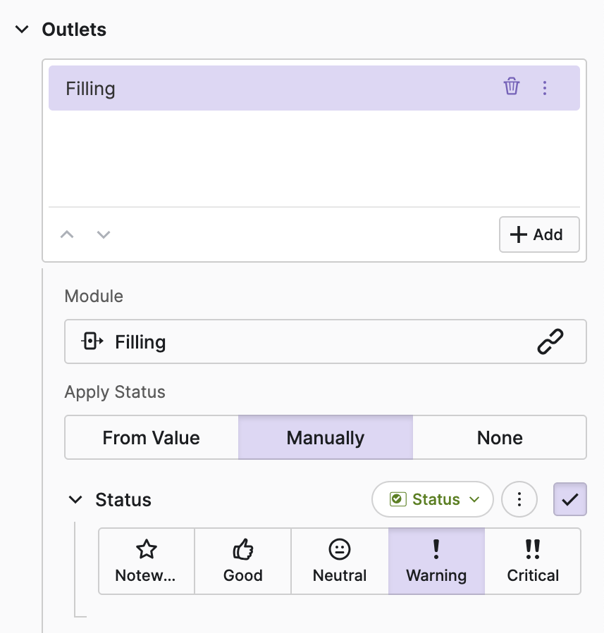 Go through all the modules you've set up and set statuses and configure outlets until your page looks like the image below.