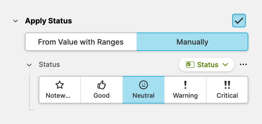 - From Ranges: You do not apply it manually but get the status from the data linked to this element automatically.