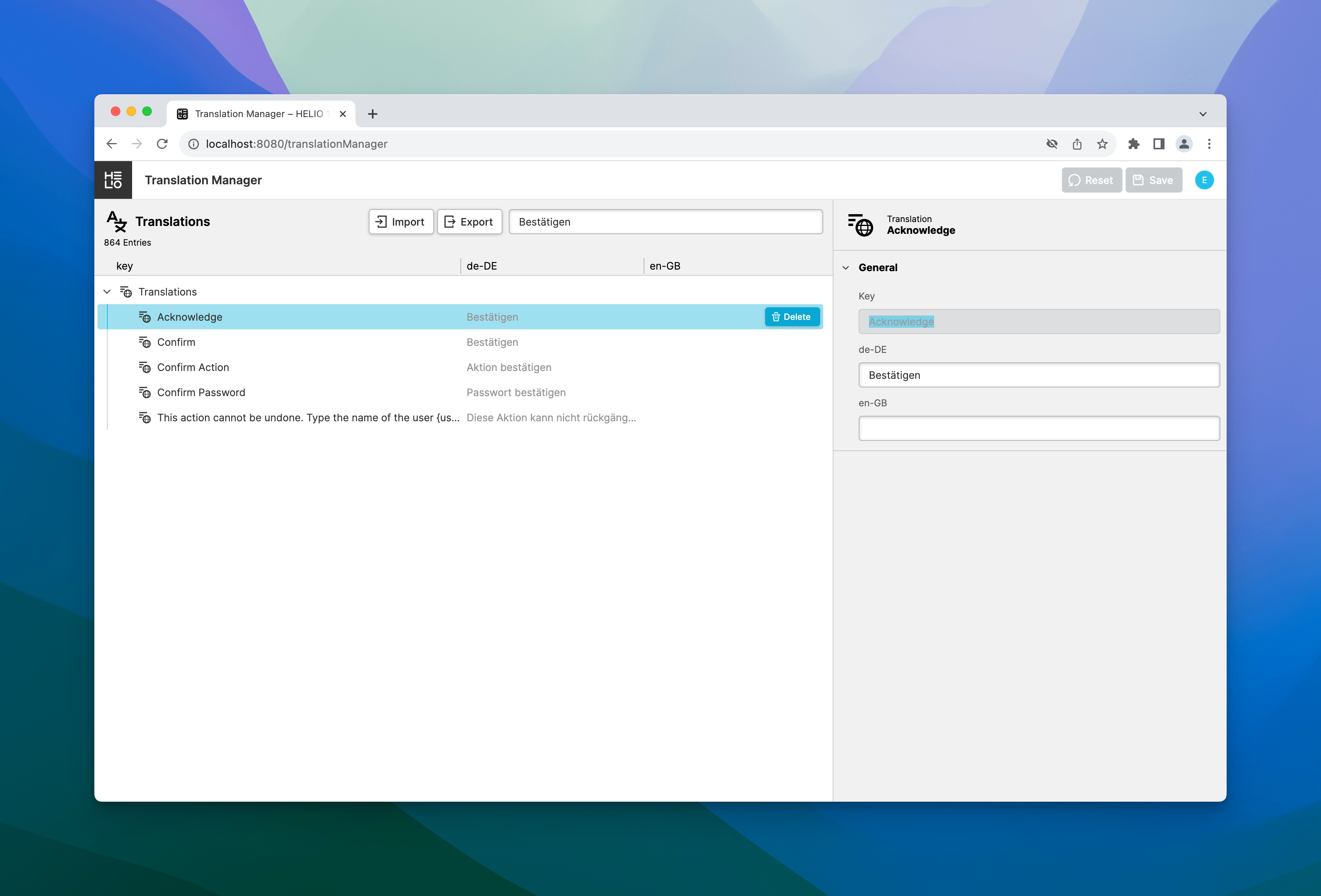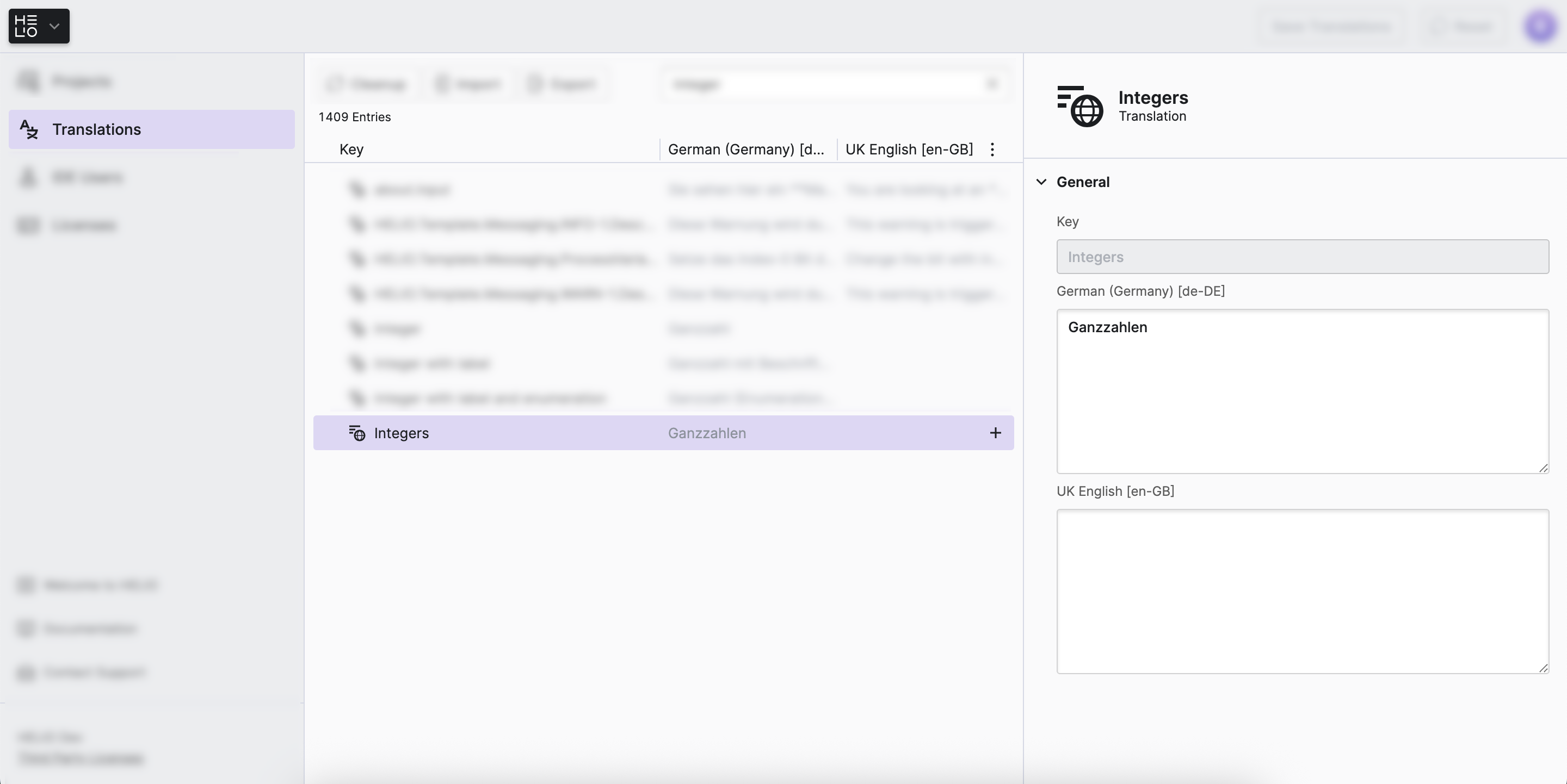 Translationis used to convert user-facing texts and messages into different languages. ATranslationincludes a version for each of the supported languages.A translation is uniquely identified in a HELIO Runtime using its