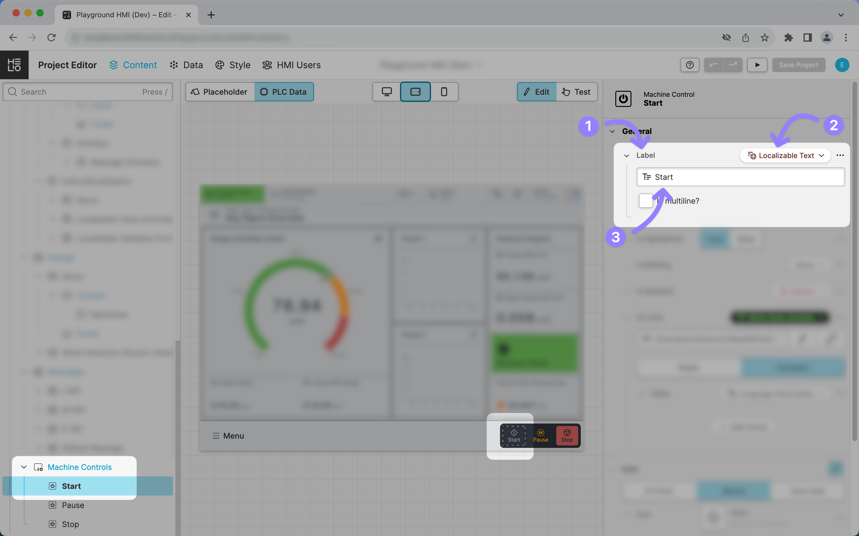 LabelProperty of thisMachine Controlshould be translated. - That’s why it uses the property type Localizable Text.