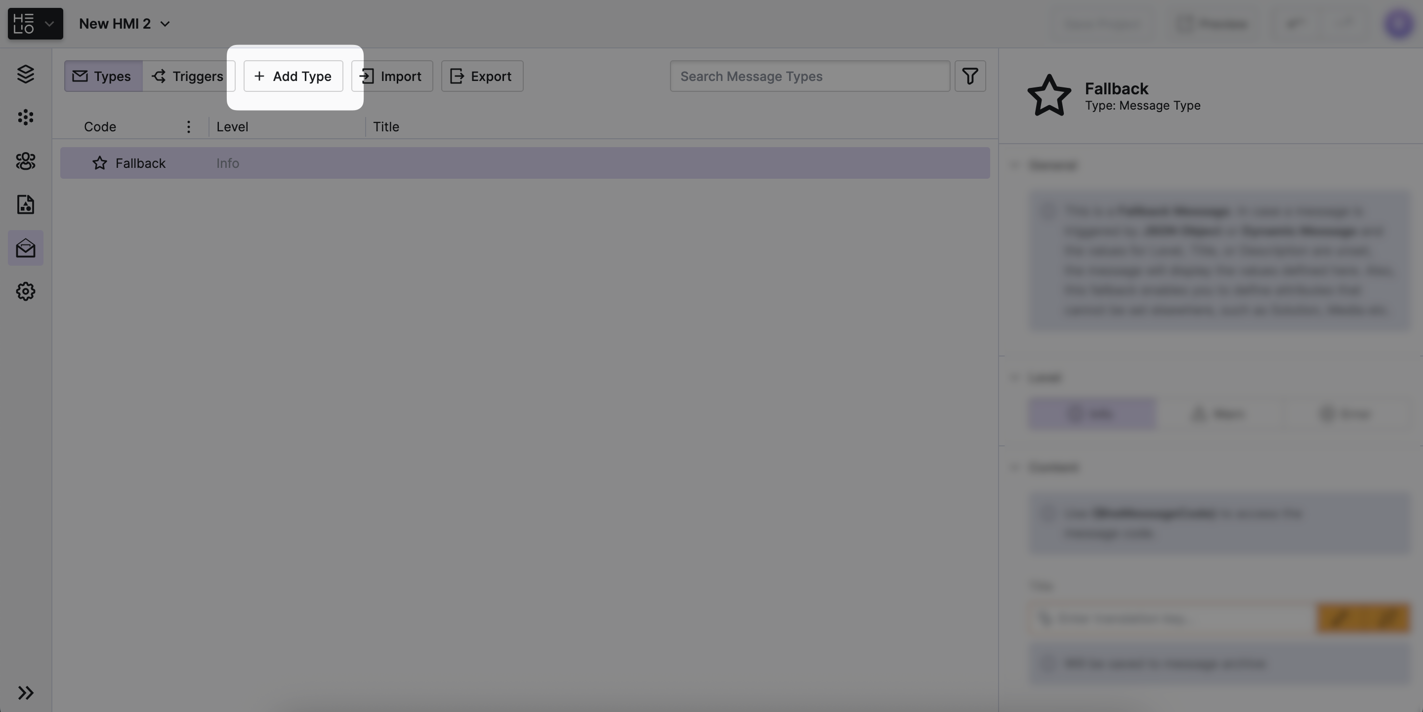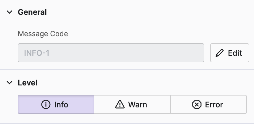 Finally, let's talk about the Info level and create a sample Message Type for it. These messages are sent to operators to make things transparent