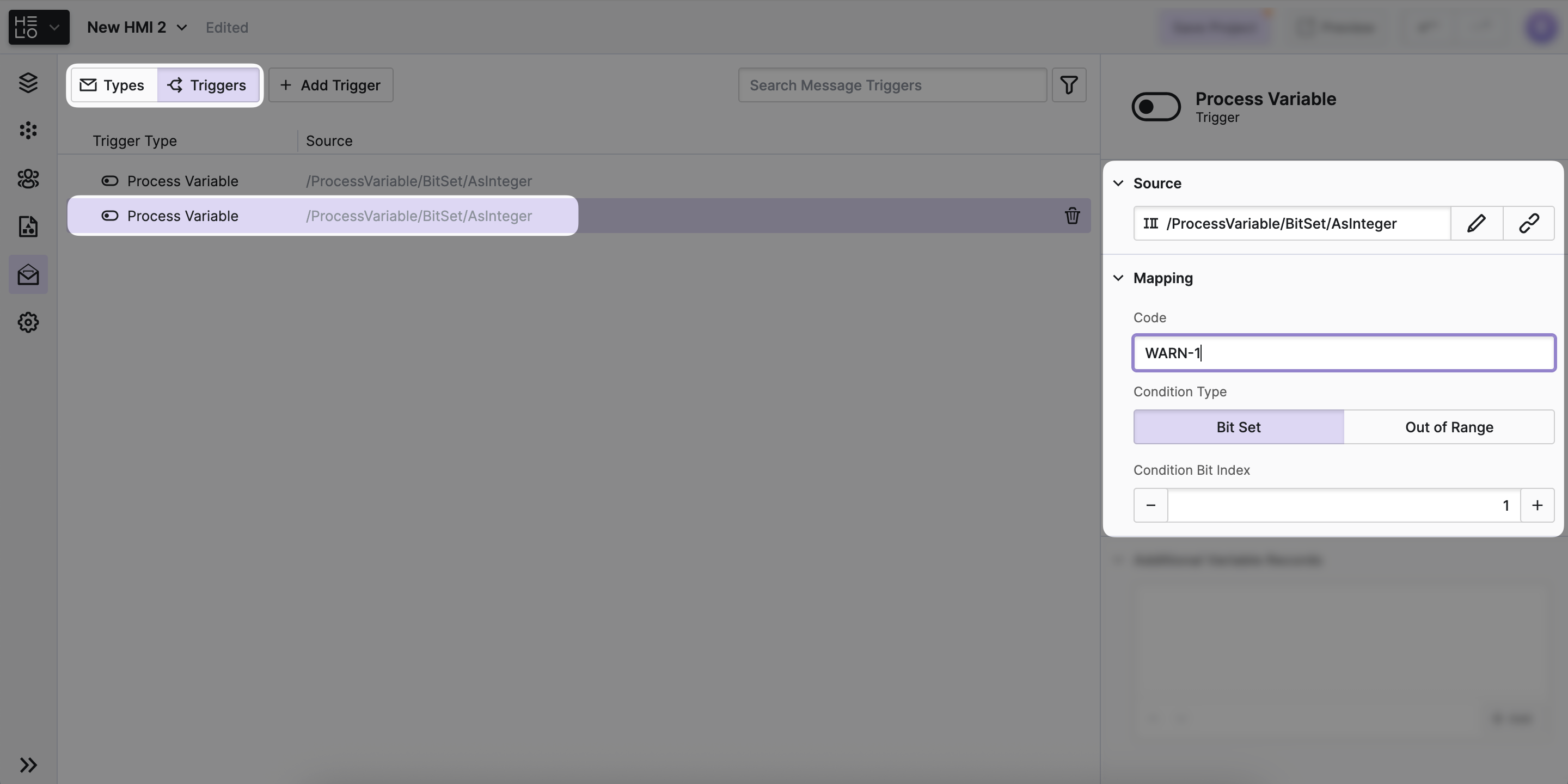 But often you just want to use a simple boolean logic to trigger messages. For example you might want to show a certain message when the PLC sets a certain switch and hide the messages as soon as the PLC resets the switch.Toggling messages like this is a piece of cake when using the bits of a variable.