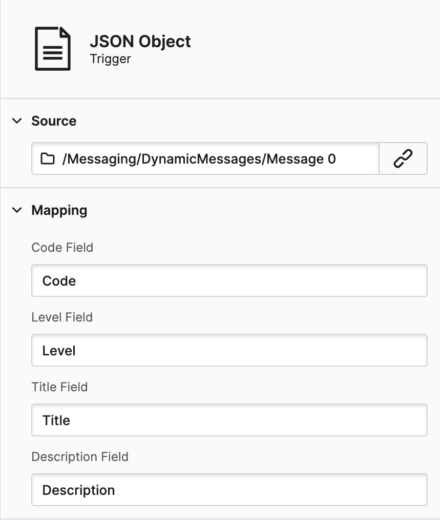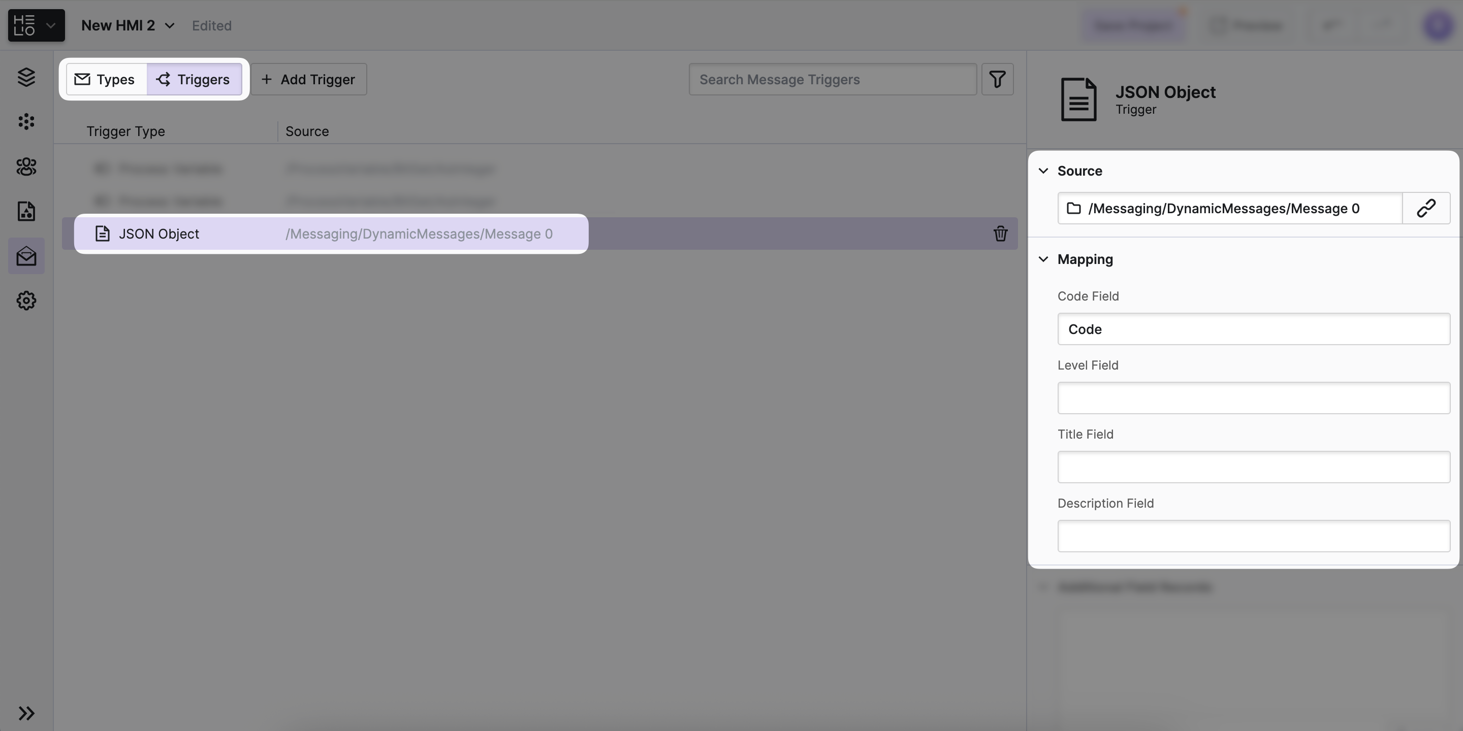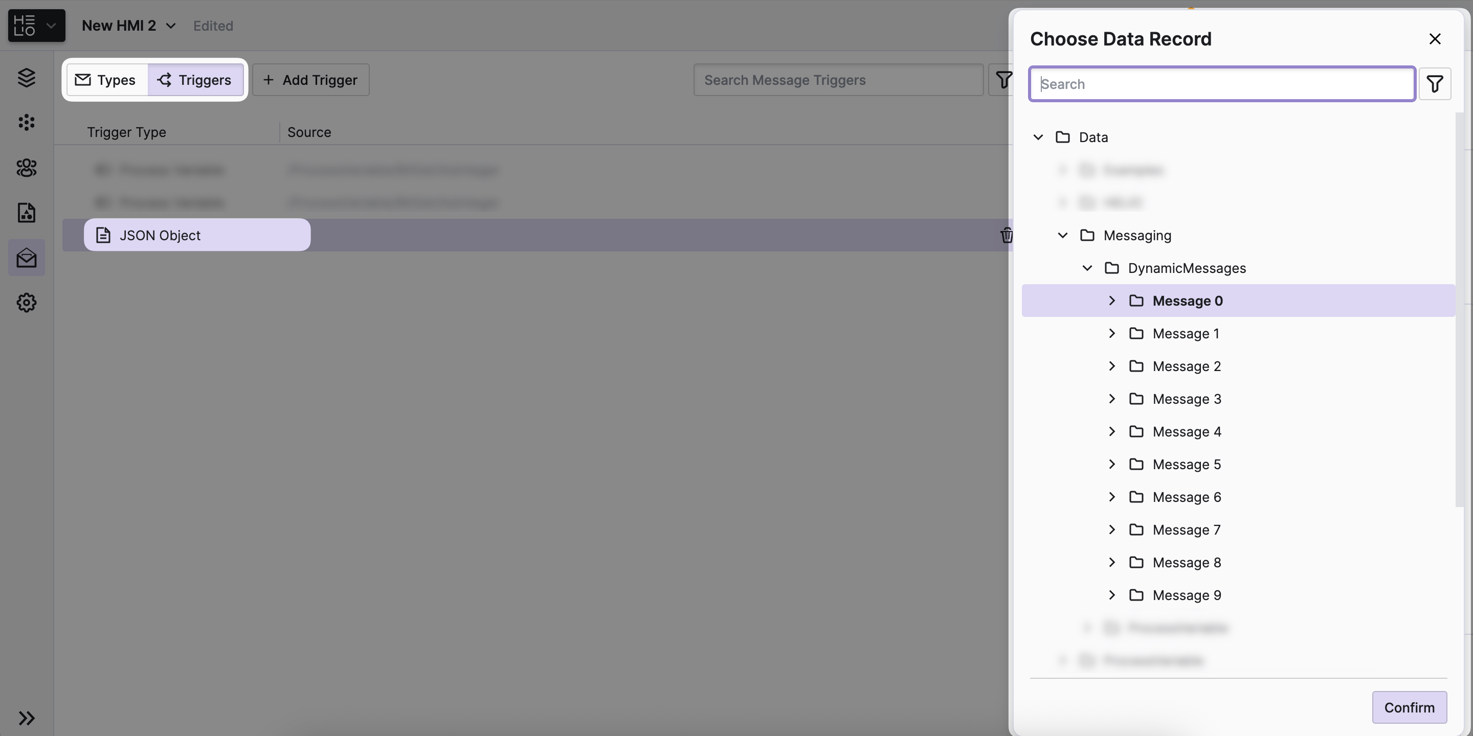 In previous HELIO versions (25.1 and below), structured objects could be represented as a data directory with message properties as child variables. This is still supported in HELIO 25.2.0 and later versions to support older project configurations without breaking existing projects. For newer projects, use the new Dynamic Message Triggers introduced in HELIO 25.2.0. They allow you to select a variable for each message property instead of specifying a property name, which is a bit more secure since HELIO can verify if this variable still exists.