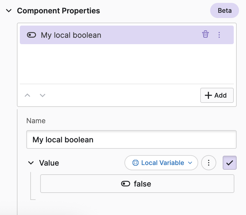 The local state of your component is defined using the Component Properties property group.