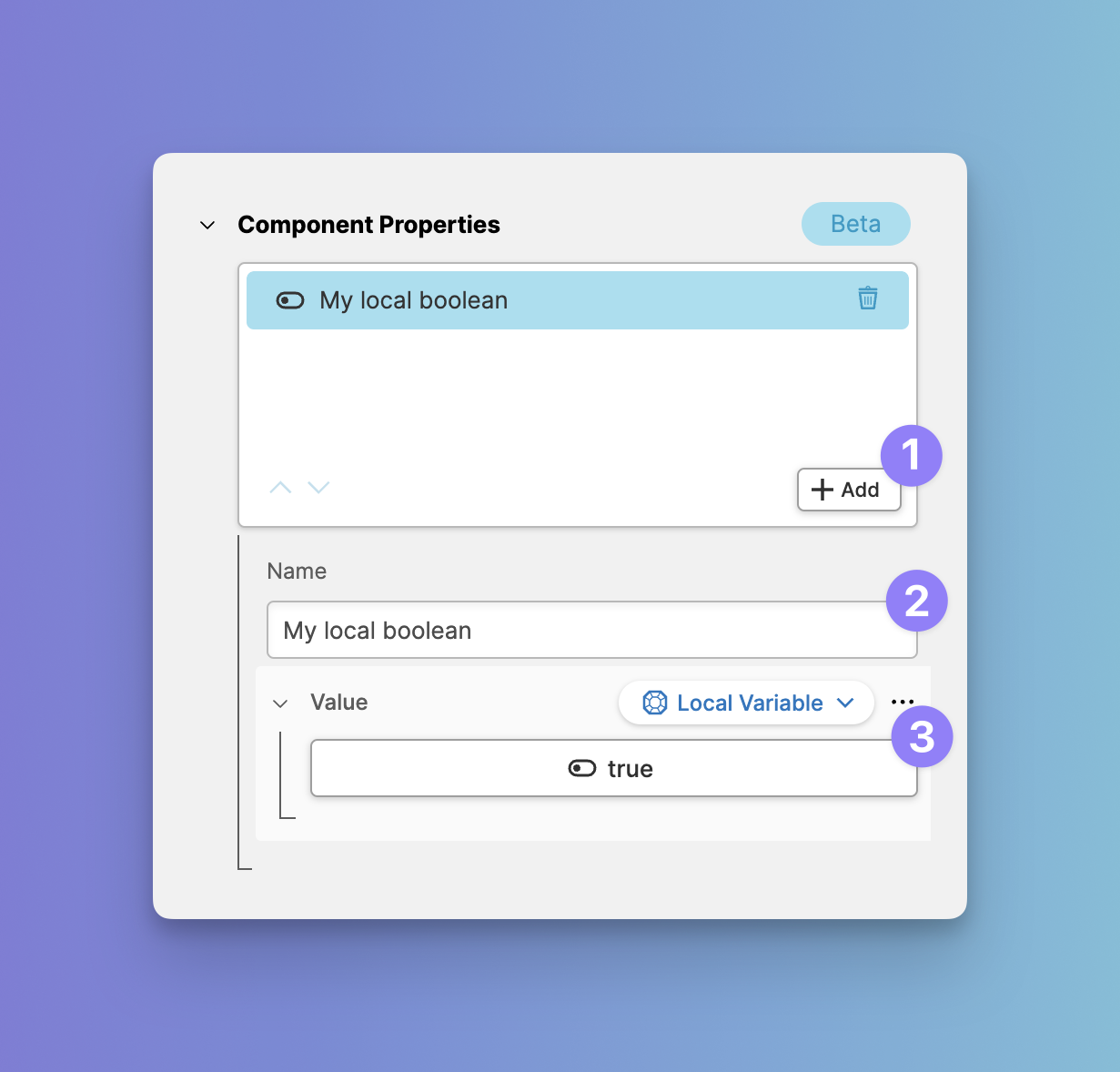 - Open the Local Variable Editor, and chose the right type as well as its initial value.