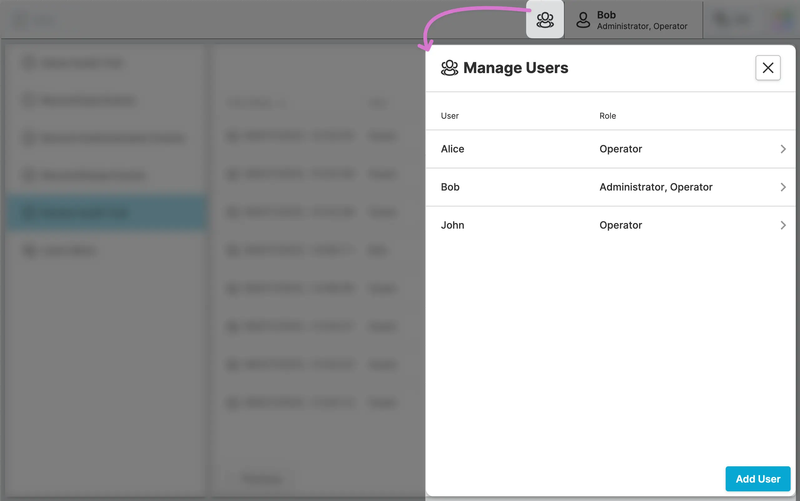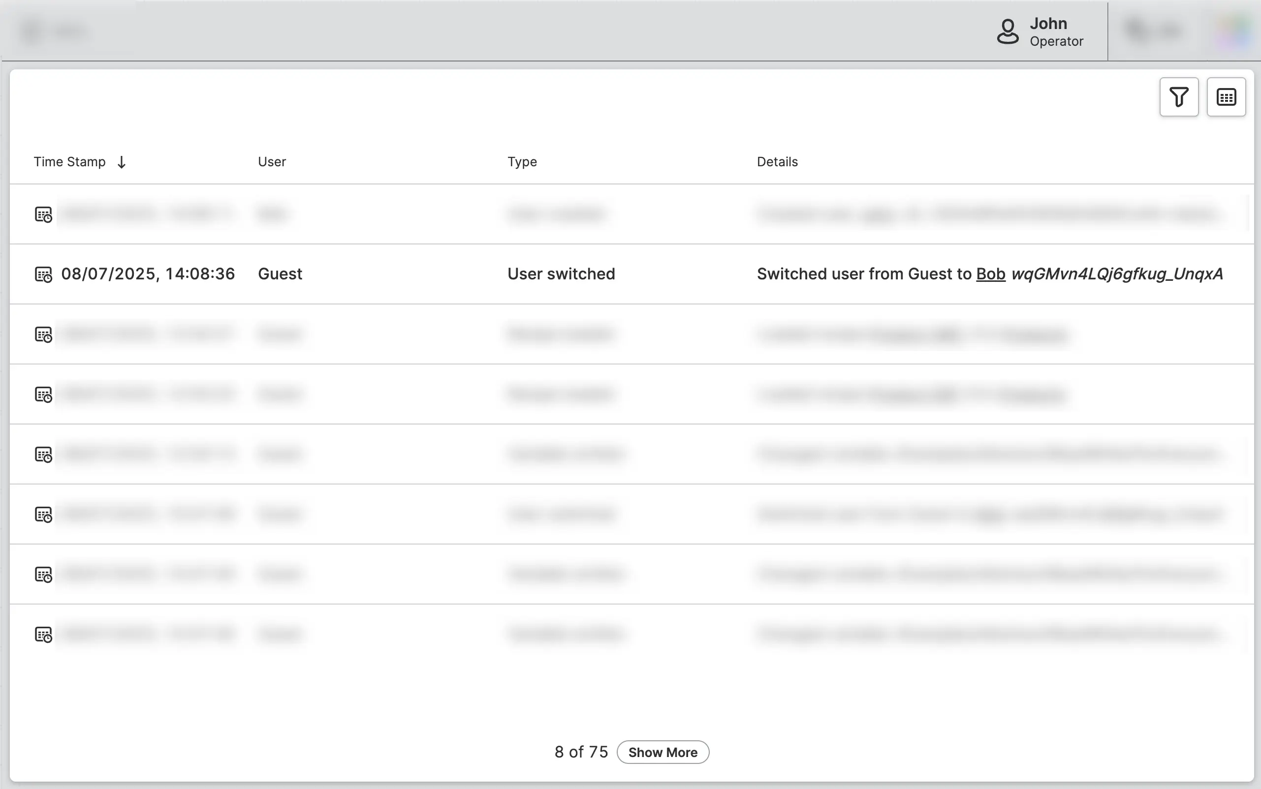 With HELIO, you can also give your customers the ability to create and manage their own user base using the User Management Page. If administrators then create, update or delete users within the HMI, these actions will also be tracked by HELIO. To simulate this: