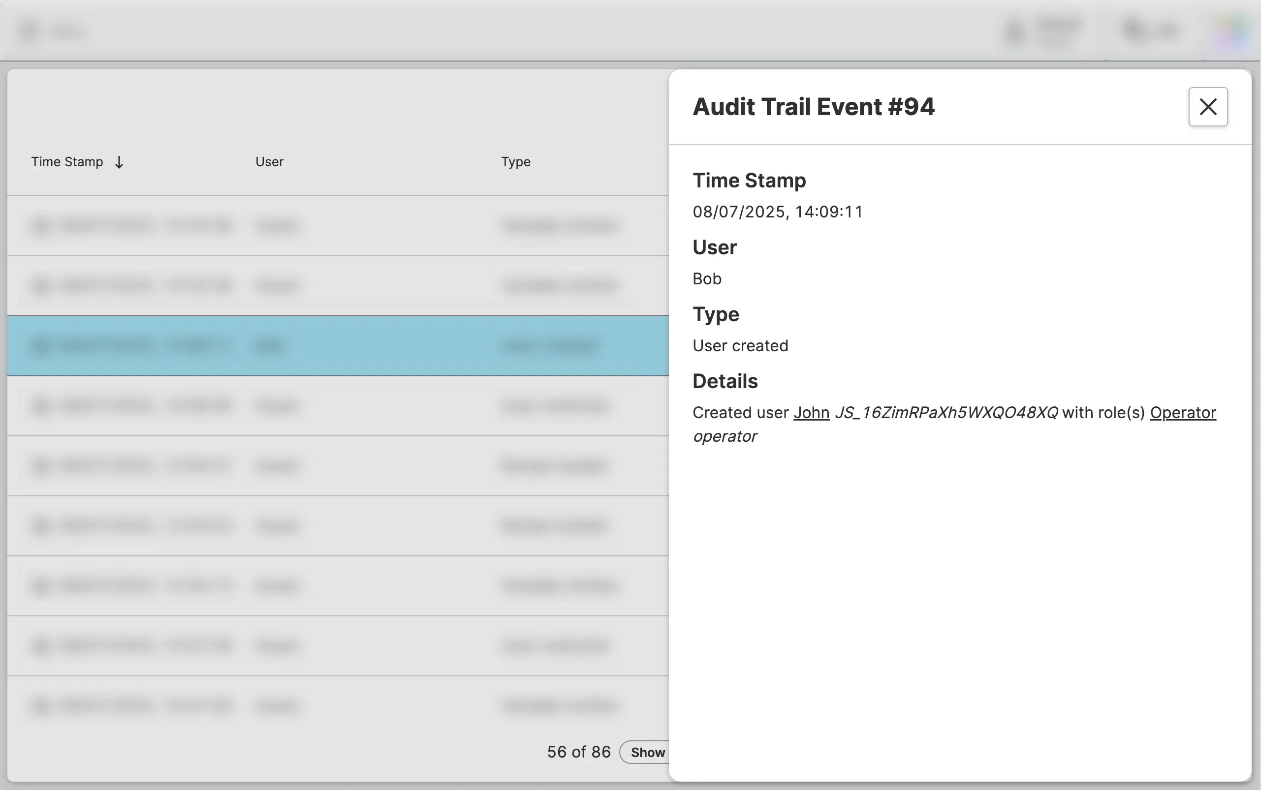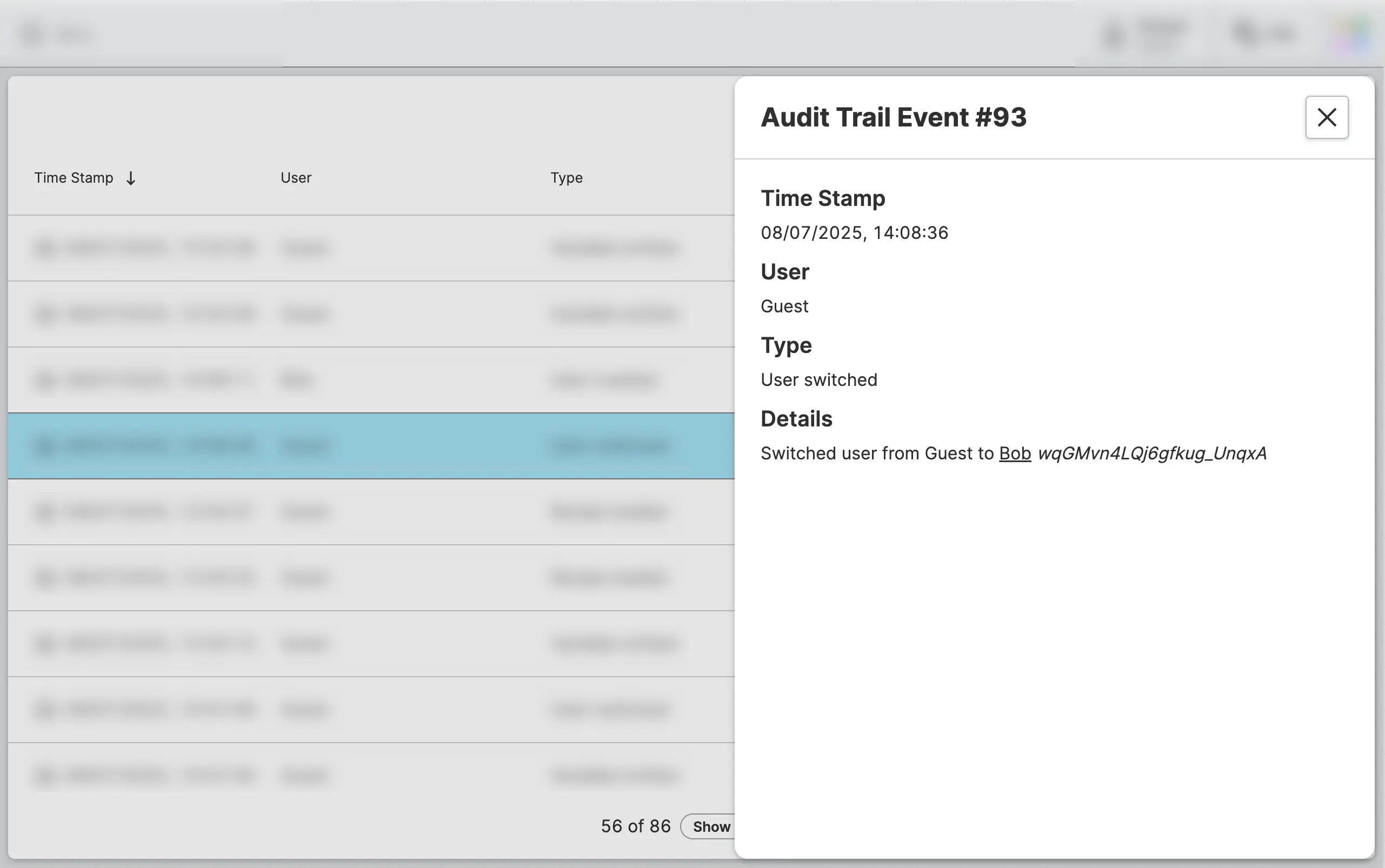 HELIO can also give you some info about the tracked events. When you're on the Audit Trail Page, just click on an event to see more details in an overlay.