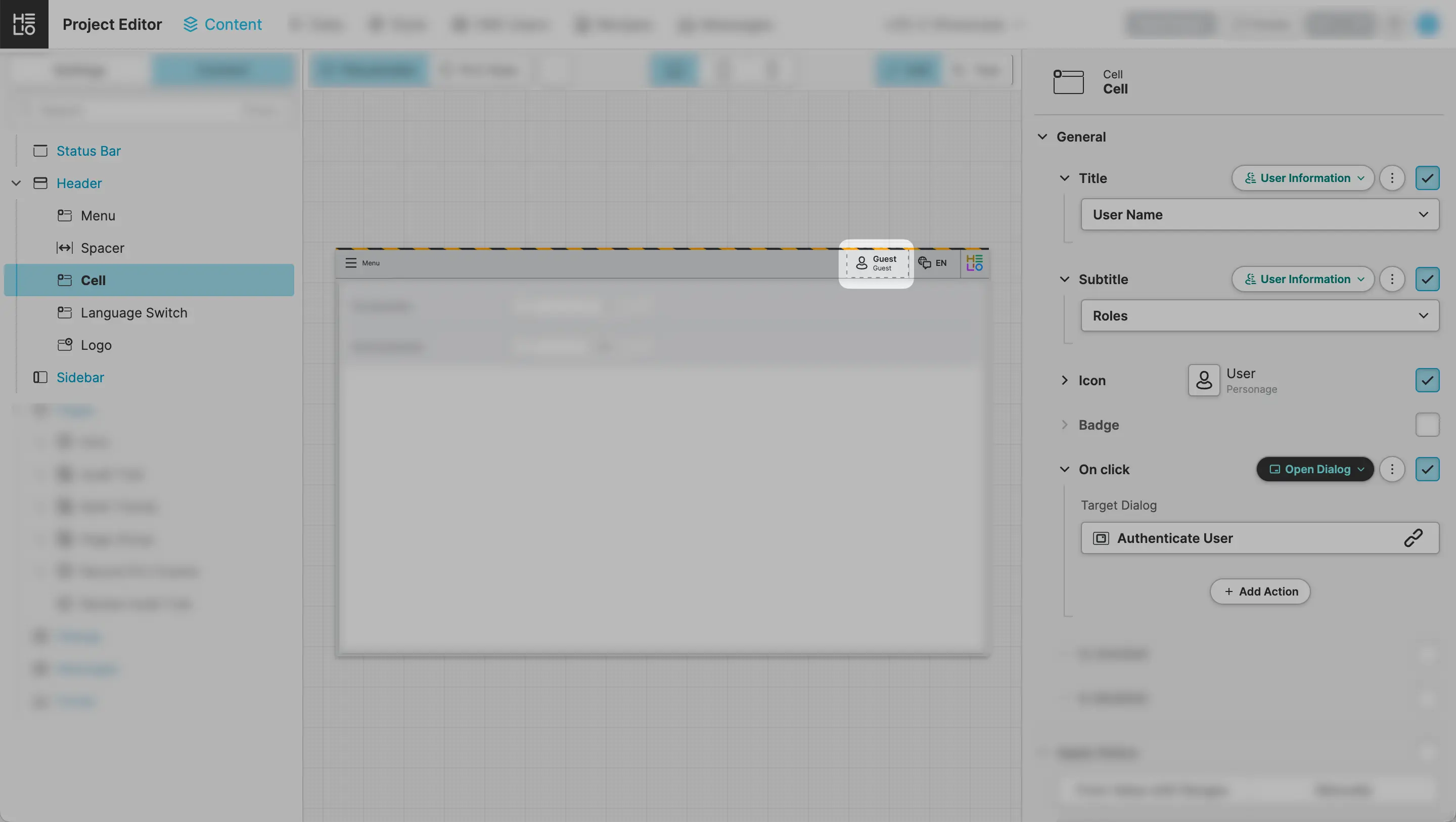 The simplest way to do this is to add the User & Login Header Cell to the header of your HMI.