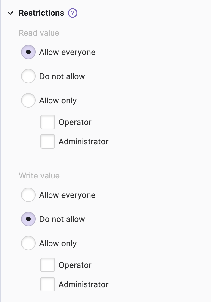 You can restrict either the reading or writing of variable values. In both cases, you can choose between...