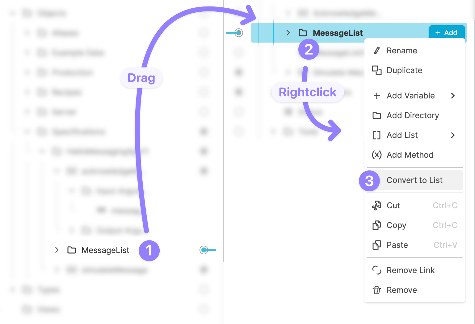 Removing elements from Lists can be tricky because most PLCs only support arrays or lists with a fixed size. A commonly used solution is to define a special sentinel attribute for each list item. This attribute indicates whether an item exists. If this attribute is missing or null, it is treated as non-existent by consumers and HMIs.
