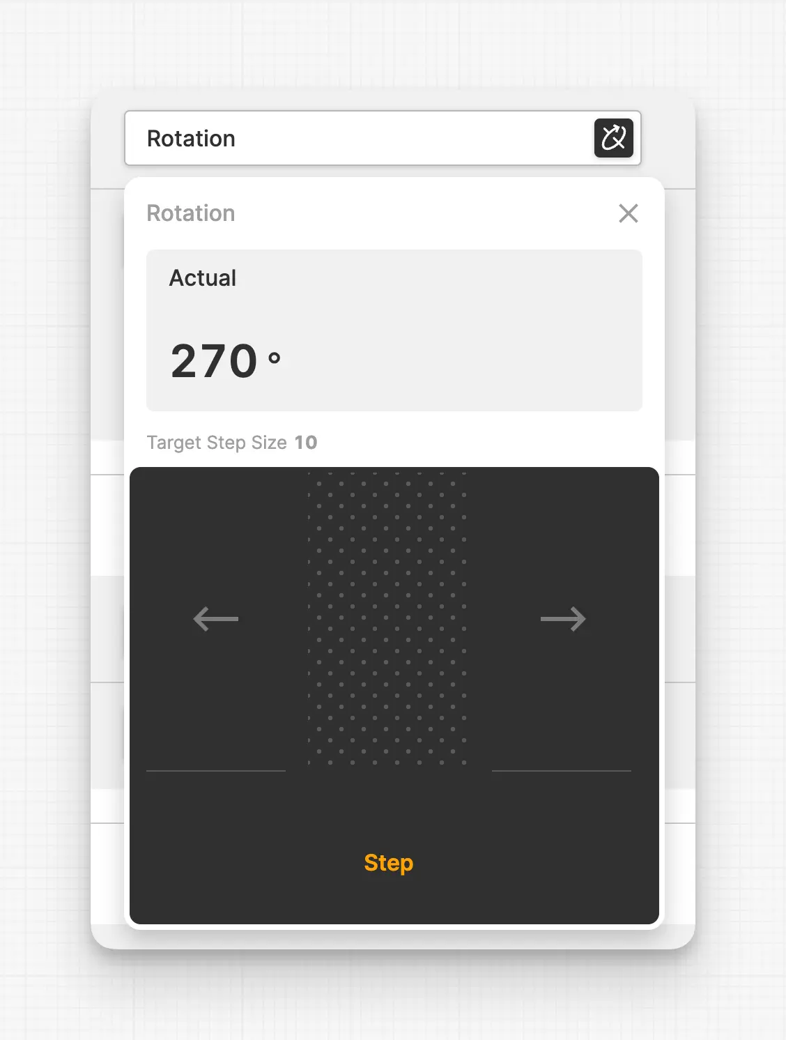 It appears as a button that opens an overlay containing large buttons for each axis. This allows operators to confidently control the machine's axes on touch devices since the buttons provide a large hit area. The element supports two interaction modes: Continuous and Step.