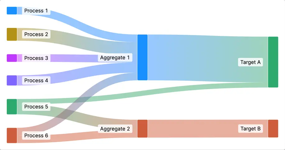 The Sankey Diagram automatically calculates proportions based on the values you define:
