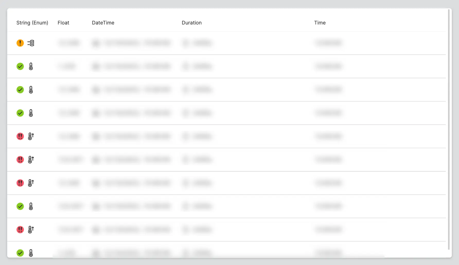 Use status, icons, and highlighting to better communicate the status and quality of an item. Use this to flag outliers and critical items right away—whether it's a machine running hot, a batch that needs attention, or equipment that needs maintenance.