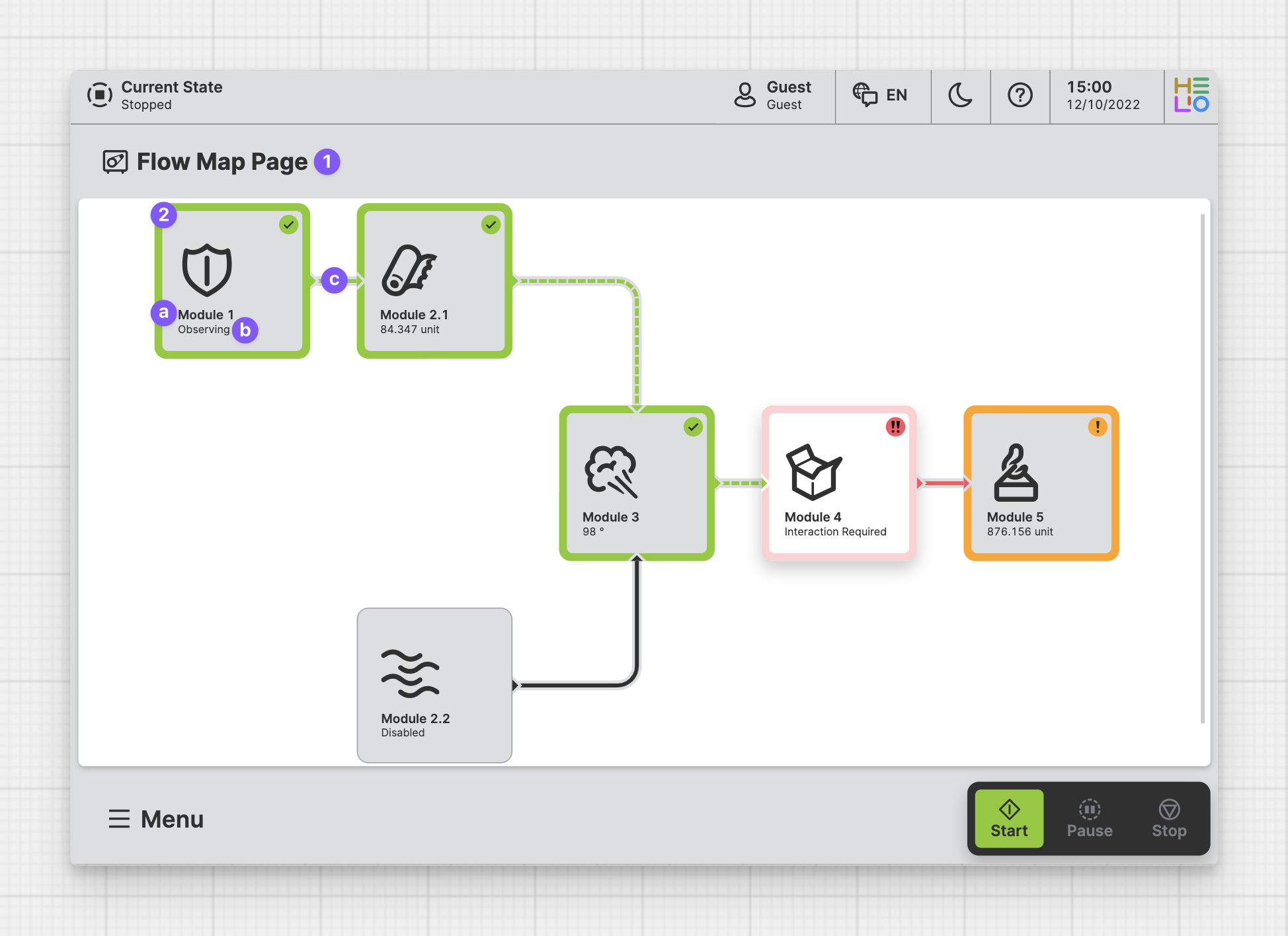 Flow Map Pageis composed of multipleFlow Map Modulesthat can be defined according to your needs.