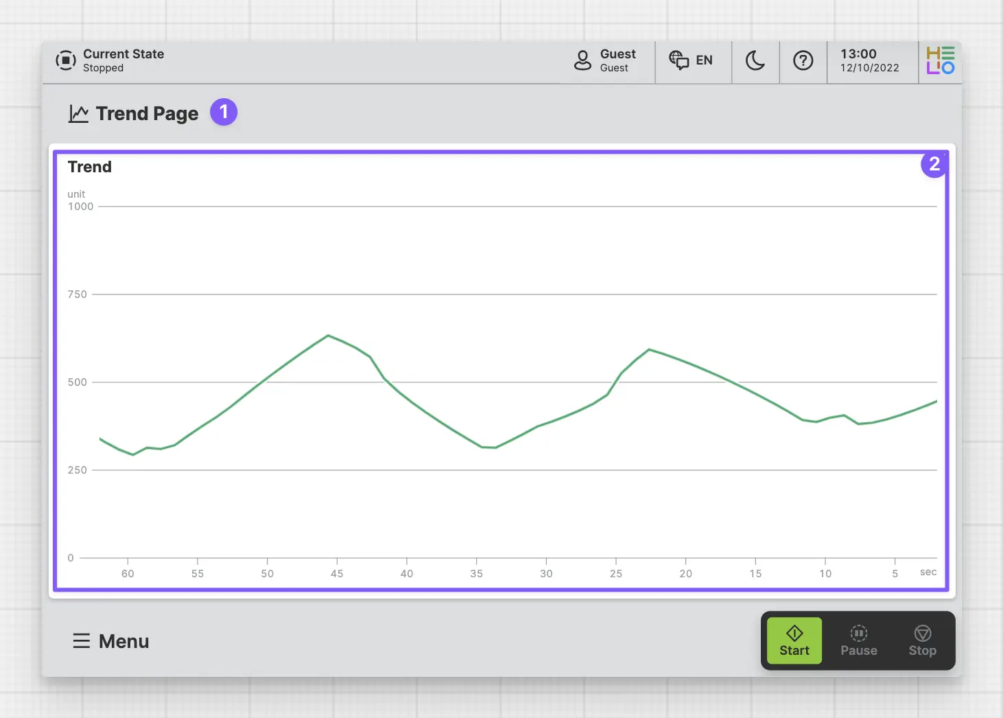 The Trend Page allows operators to visualize the progression of numeric values over time.