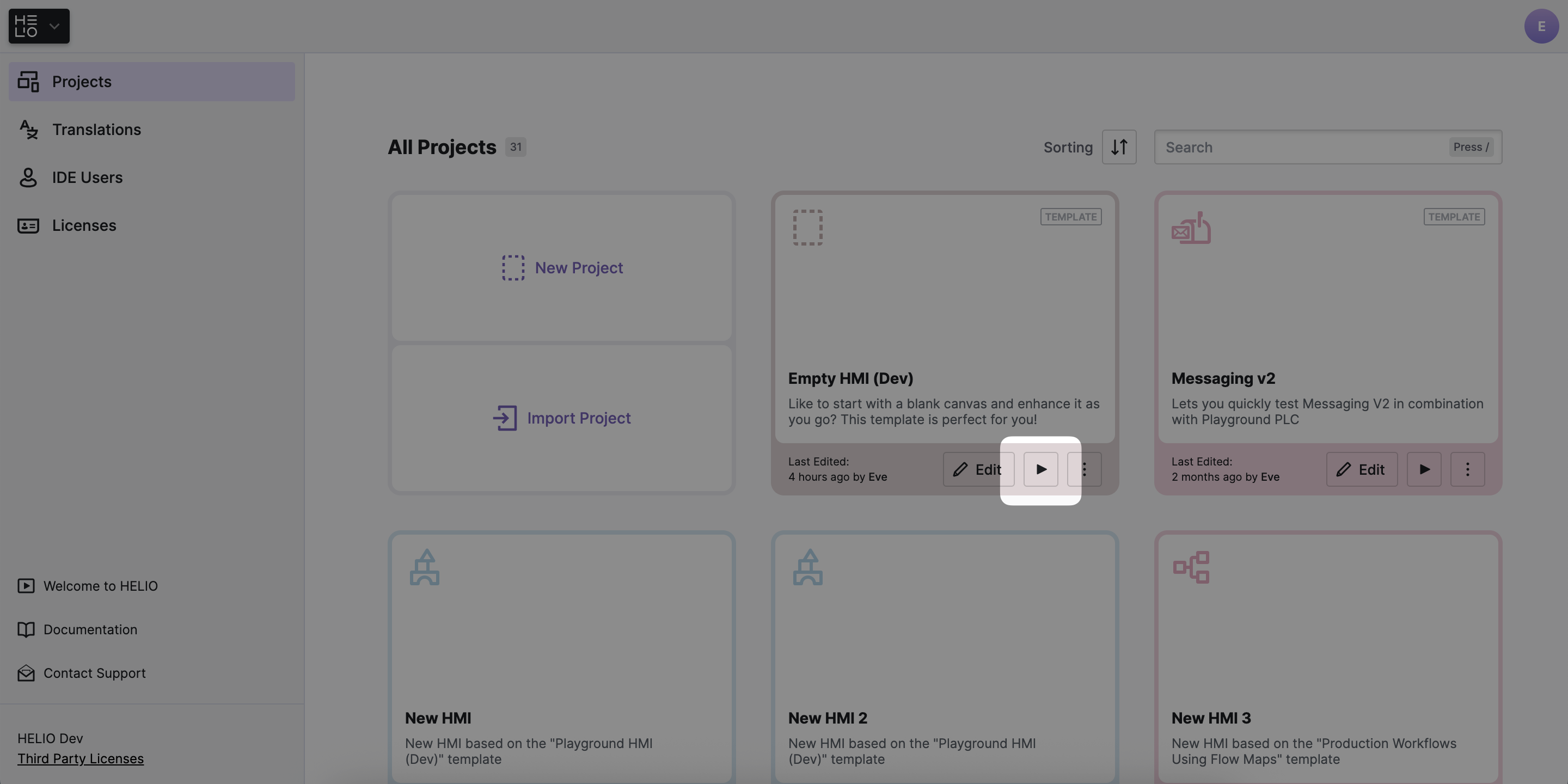 After you have completed your project, you will probably want to run it in production mode. This means no placeholders, only live PLC data is used and displayed.