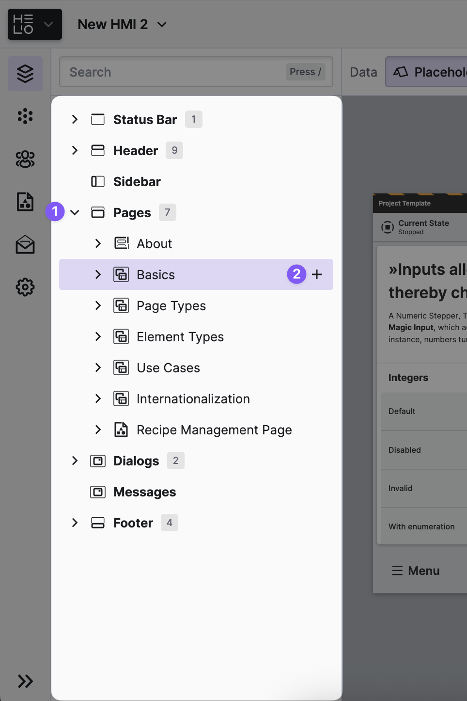 The HMI Content Tree displays the hierarchy of the pages and elements of your HMI. It provides an overview of the structure of the HMI and allows users to easily navigate to different pages and elements without having to use the HMI Preview Panel.