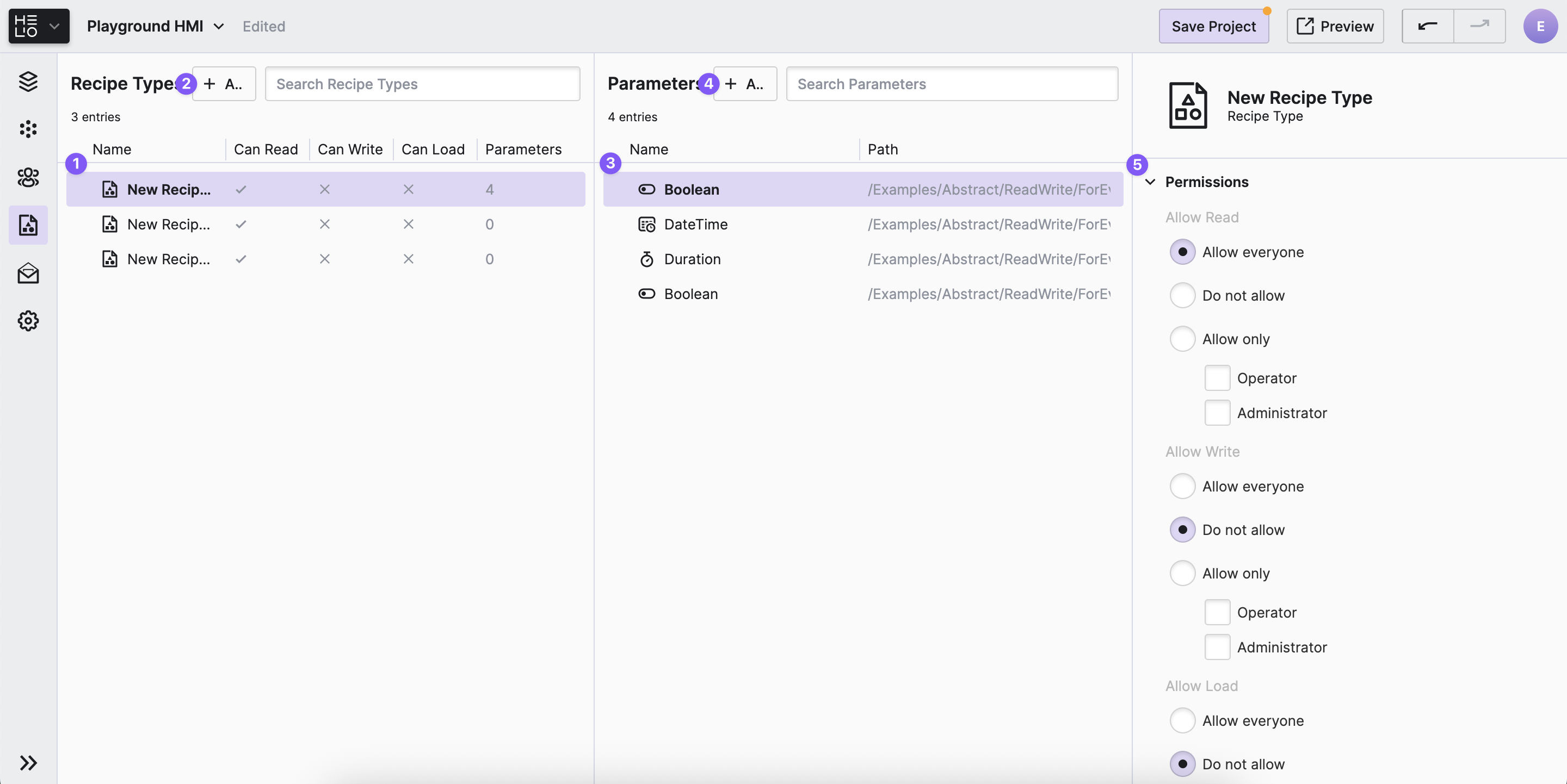 Use the Recipes View to define your machine's Recipe Types and add